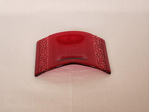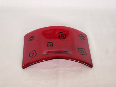Inky breeze flowing across a transparent red dish. A candle bridge, size: 125 x 185 x 45 mm. Suggested uses: pillar or tea light candles.