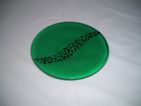 Inky breeze flowing across a transparent emerald bowl. A shallow classic style bowl with rim flared outwards, size: 215 dia. x 25 mm. Suggested uses: display, trinket dish, sweets dish.
