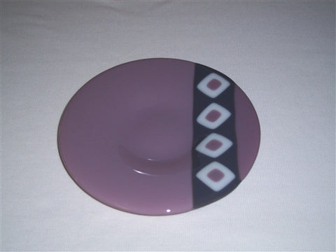 Opalescent lilac bowl with twin diamond peaks emerging from a contrasting stripe. A shallow classic style bowl with rim flared outwards, size: 215 dia. x 25 mm. Suggested uses: display,...