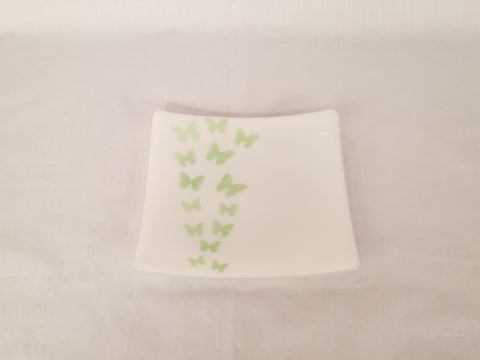 Flared Square Plate - 200 - Butterflies - Snow Green