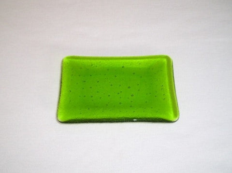 Opalescent spring dish, simply a delight. Mini rectangular dish, size: 90 x 135 x 20 mm. Suggested uses: trinket dish, sauce and dip dish for a rectangular 190 x 390...