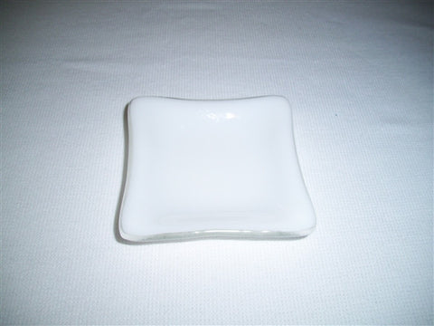 Opalescent white dish, simply a delight. Mini square dish, size: 90 x 90 x 20 mm. Suggested uses: trinket dish, sauce and dip dish for a square plate, shallow 130...