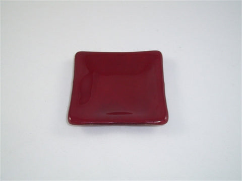Opalescent deep red dish, simply a delight. Mini square dish, size: 90 x 90 x 20 mm. Suggested uses: trinket dish, sauce and dip dish for a square plate, shallow...