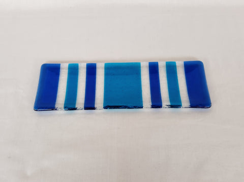 Shallow Rectangular Plate - 105 - Stripey - Rainbow Opalescent